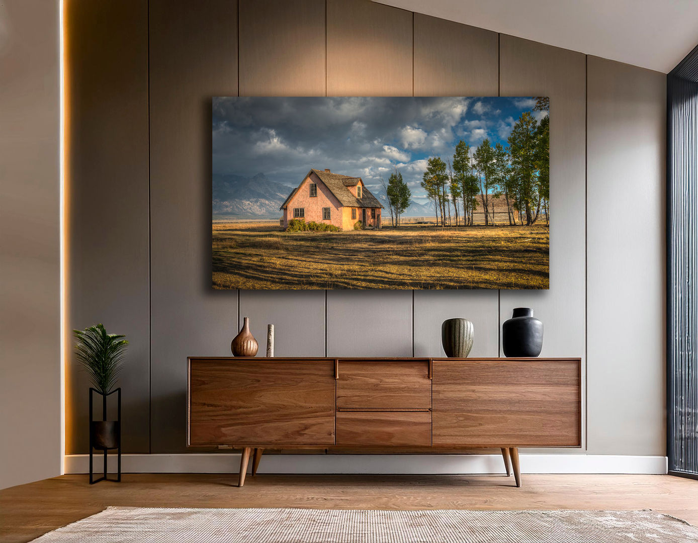 At Mormon Row, most people aim their cameras at the weathered barns that have become iconic. However, my attention was drawn to the pink homestead house of John and Bartha Moulton. The way the morning sunlight illuminated the house while shadows played across the grass in front created a moment of quiet beauty. This unique perspective on a well-loved location highlights the balance of resilience and grace in this rugged setting.